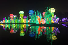 Dubai Garden Glow is a unique outdoor park featuring vibrant light displays, sculptures, and themed installations, perfect for a family outing.