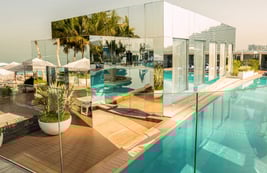 Experience panoramic city and gulf views from this glass-framed observation deck overlooking the Palm Islands.